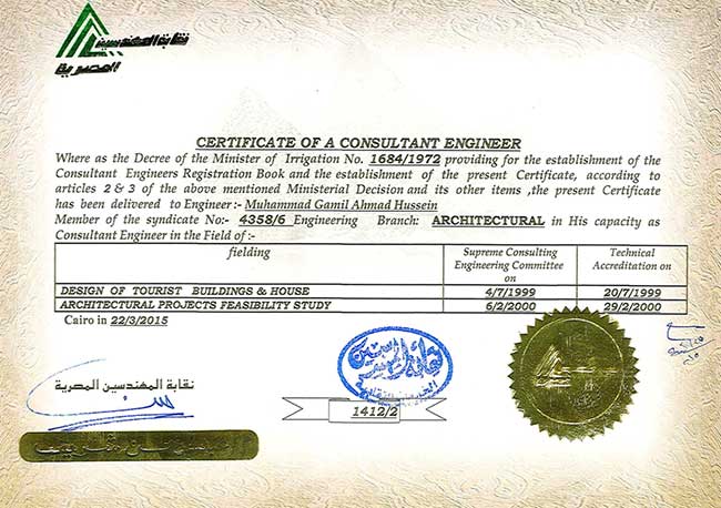Consultant Engineer In The Design Of Residential Buildings , Tourist , Industrial And Feasibility Studies For The Projects No. 1412/2