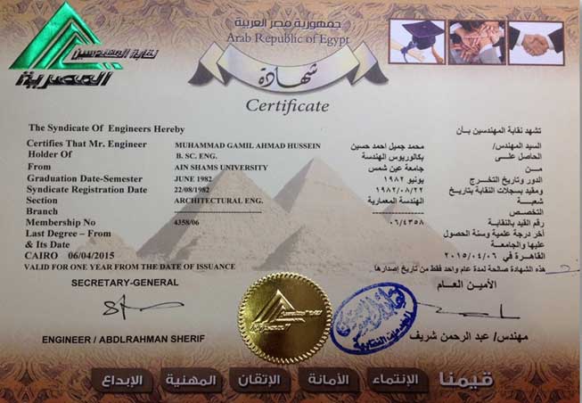 Certificates Of Architecture Member At The Syndicate Of Engineers No. 4358/6